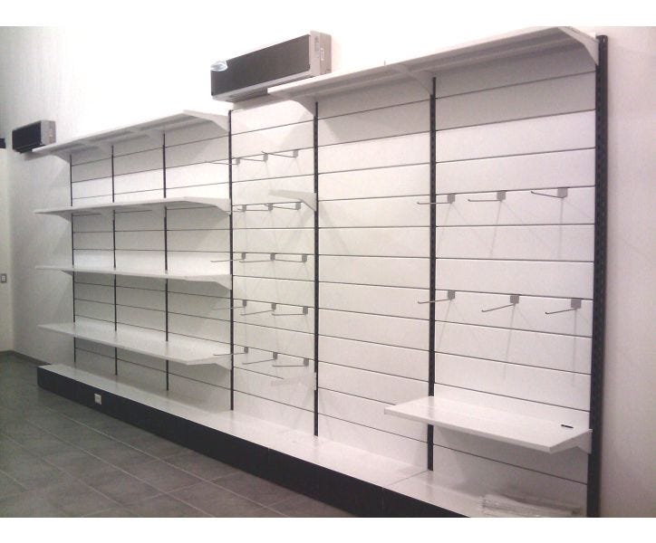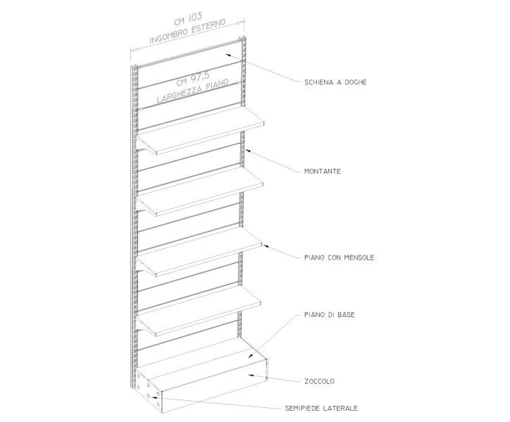 Caratteristiche del prodotto: scaffalatura metallica da negozio, modulo a parete composta da: