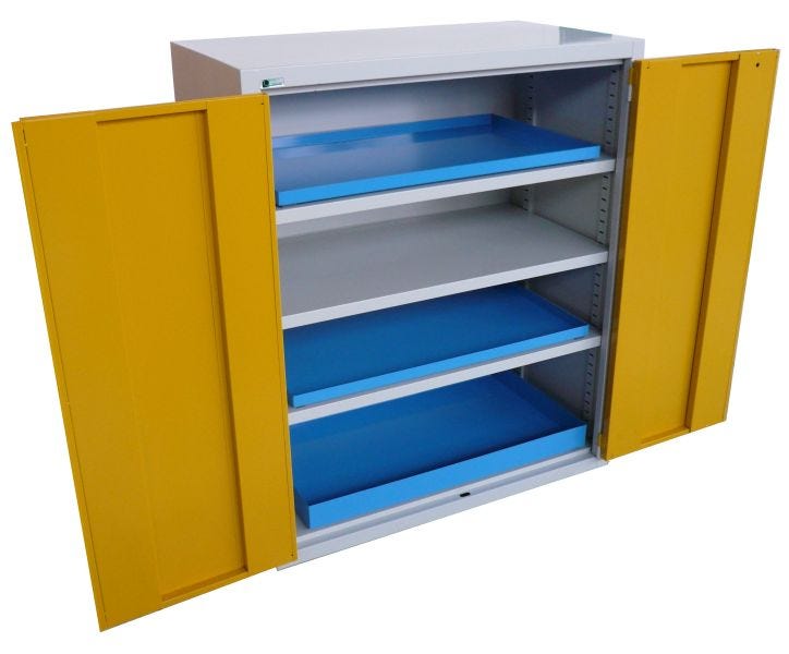 Armadio basso in lamiera per officine con ante a battente fornito monoblocco cm. 100x50x100h