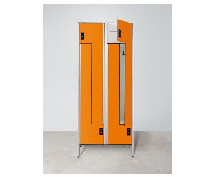 - armadio in laminato stratificato HPL con ante ad apertura a "L" sp. mm. 8 (mm. 4 per la schiena) con superficie antigraffio