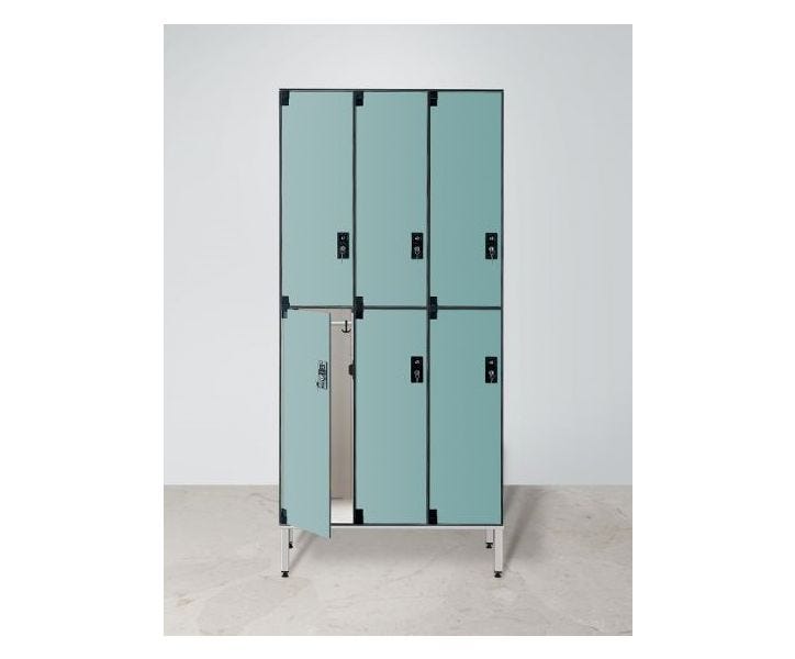 Armadio spogliatoio in laminato stratificato HPL sovrapposto a 6 posti certificato per uso alimentare cm. 93,2x50x200h