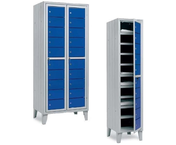 Armadio casellario in metallo di vari colori a 20 vani monoblocco cm. 80x50x180h