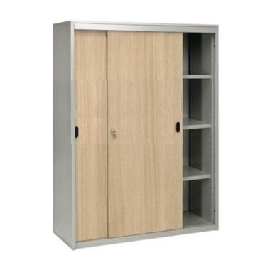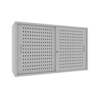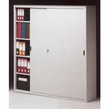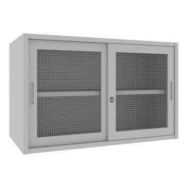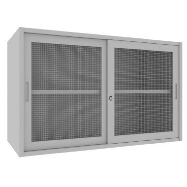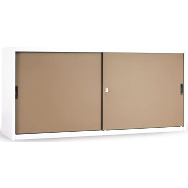 Mobile basso per ufficio con top in nobilitato e ante scorrevoli in metallo cm. 120x45x87H