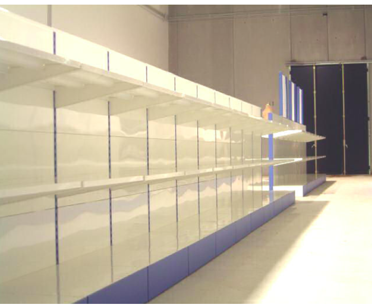 La gondola è bifacciale, la profondità delle base è di cm. 60 per ogni lato.