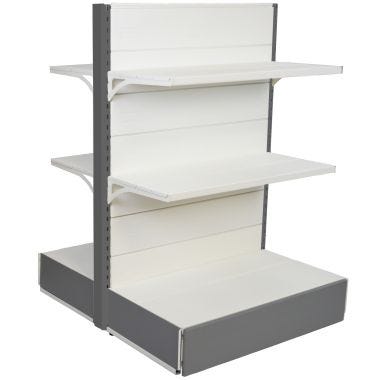 completamente ACCESSORIABILE con prodotti associati a fine pagina, come piani aggiuntivi, ganci portablister, portaprezzi, battuta frontale per posizionamento inclinato del piano e molto altro